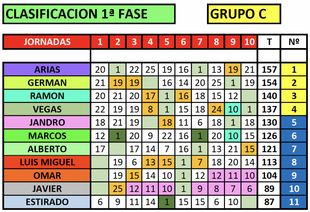 CLASIFICACIÓN 1ª FASE – 10º CAMPEONATO