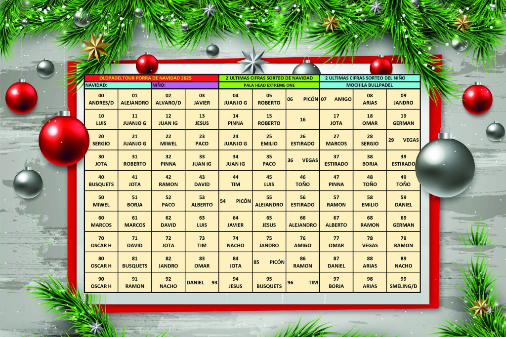Extraordinaria pala de padel, para el agraciado que tenga la suerte de que su número coincida con las dos últimas cifras del premio gordo de la lotería de Navidad 2025